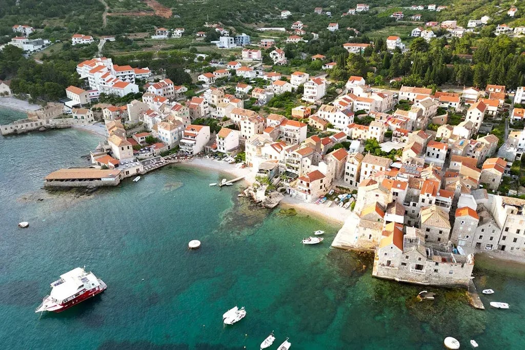 Begin your journey in Split, where you can rent high-quality bikes if you haven’t brought your own. The daily ferry to Vis takes 2.5 hours, departing early morning. Vis, the furthest inhabited island from the mainland, served as a Yugoslav military base until 1989, which inadvertently preserved its authentic character.